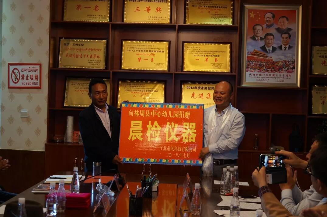 2018年7月24日江蘇童訊科技有限公司董事長楊正寶跟隨蘇州市民辦教育協(xié)會、蘇州市光彩事業(yè)促進會、蘇州市平江實驗學校名師團一行9人來到這里支教。這里除了有蘇州路、蘇州援藏干部,還有一所蘇州援建的“林周蘇州小學”,有1000多名當?shù)氐牟刈逍『⒃谶@里讀書。